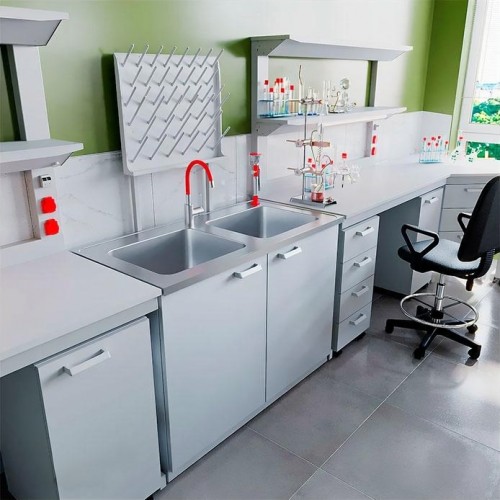 Большая глубина раковины даёт возможность с удобством мыть высокую лабораторную посуду (мерные цилиндры, бюретки и т.п.)