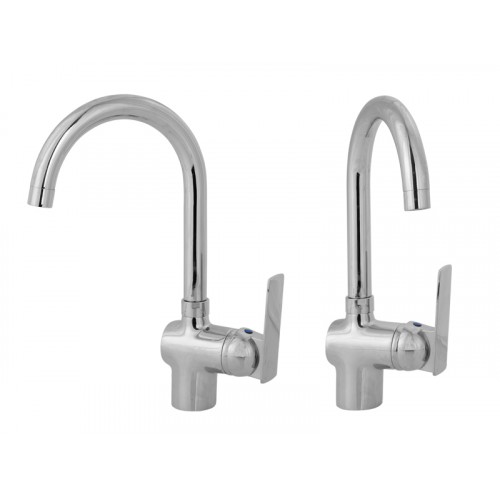 • однозахватный хромированный дугообразный смеситель;