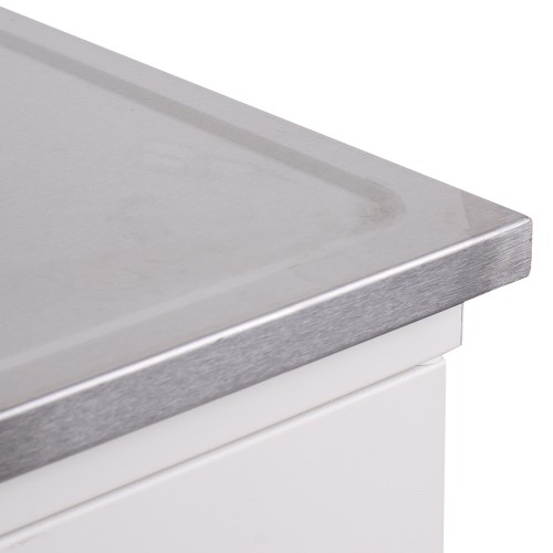 Рабочая поверхность имеет противопроливочный бортик по периметру. Глубина раковин - 250 мм. Сами раковины цельнотянутые (без сварных швов внутри).