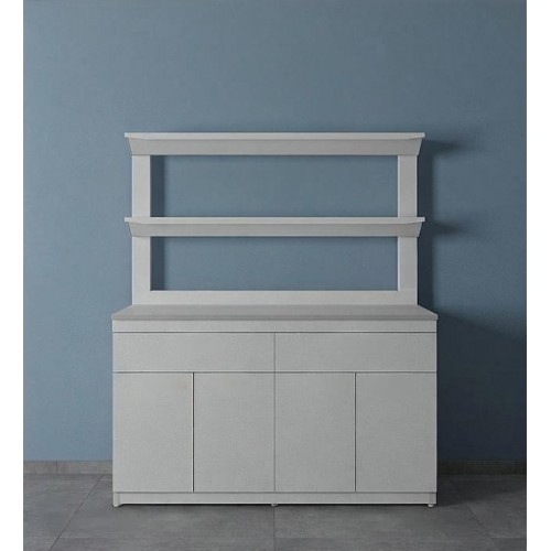 Стол лабораторный с двумя полками ЛК-1500 СП состоит из прочного сборно-разборного металлического каркаса с полимерным покрытием серого цвета, металлической надстройки с двумя полками из стали и столешницы.