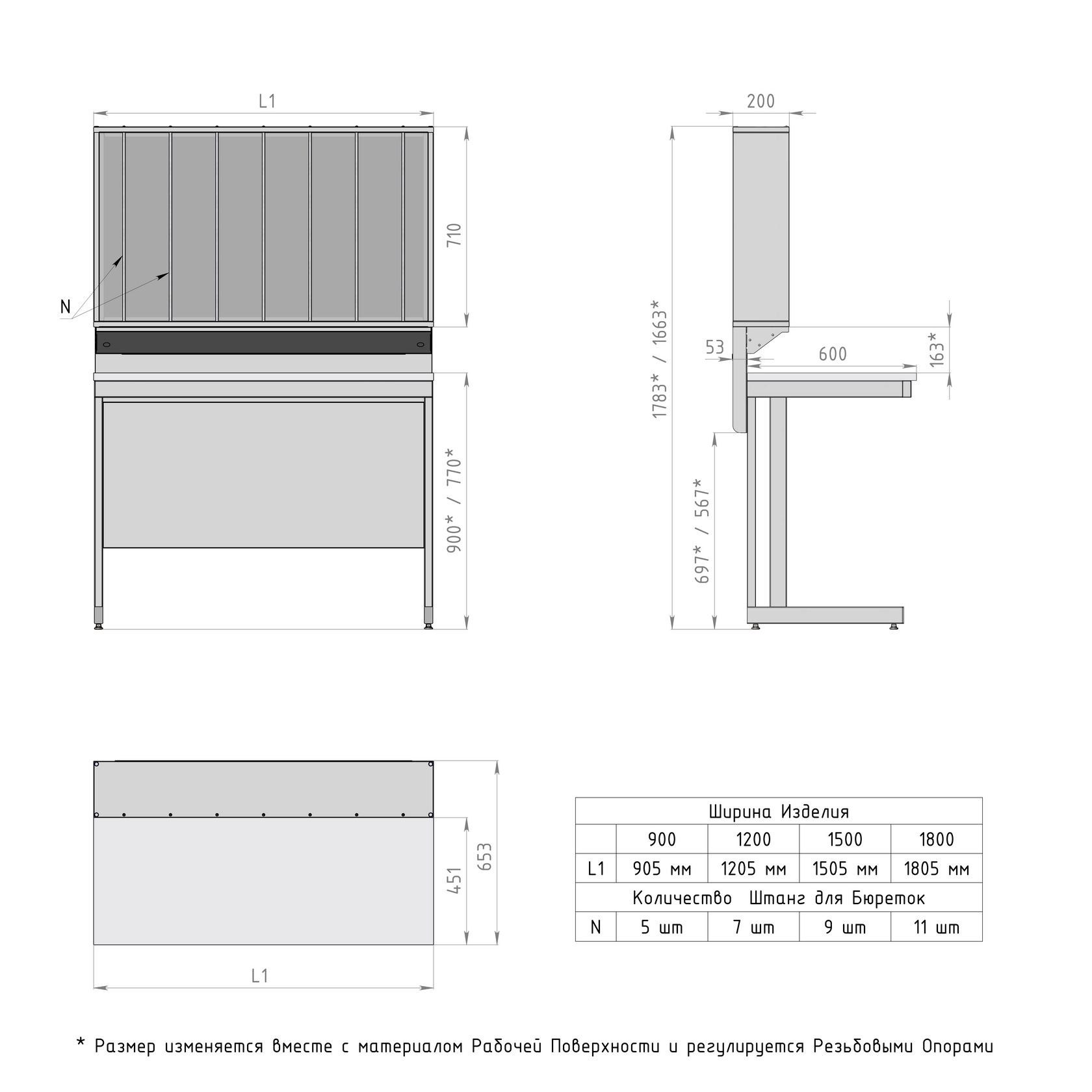 Металлический каркас с надстройкой и столешницей из выбранного материала обеспечат удобное проведение титрования.