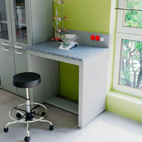 Лабораторный весовой антивибрационный стол состоит из прочного сборно-разборного металлического каркаса с полимерным покрытием серого цвета и столешницы из природного полированного гранита толщиной 30 мм.