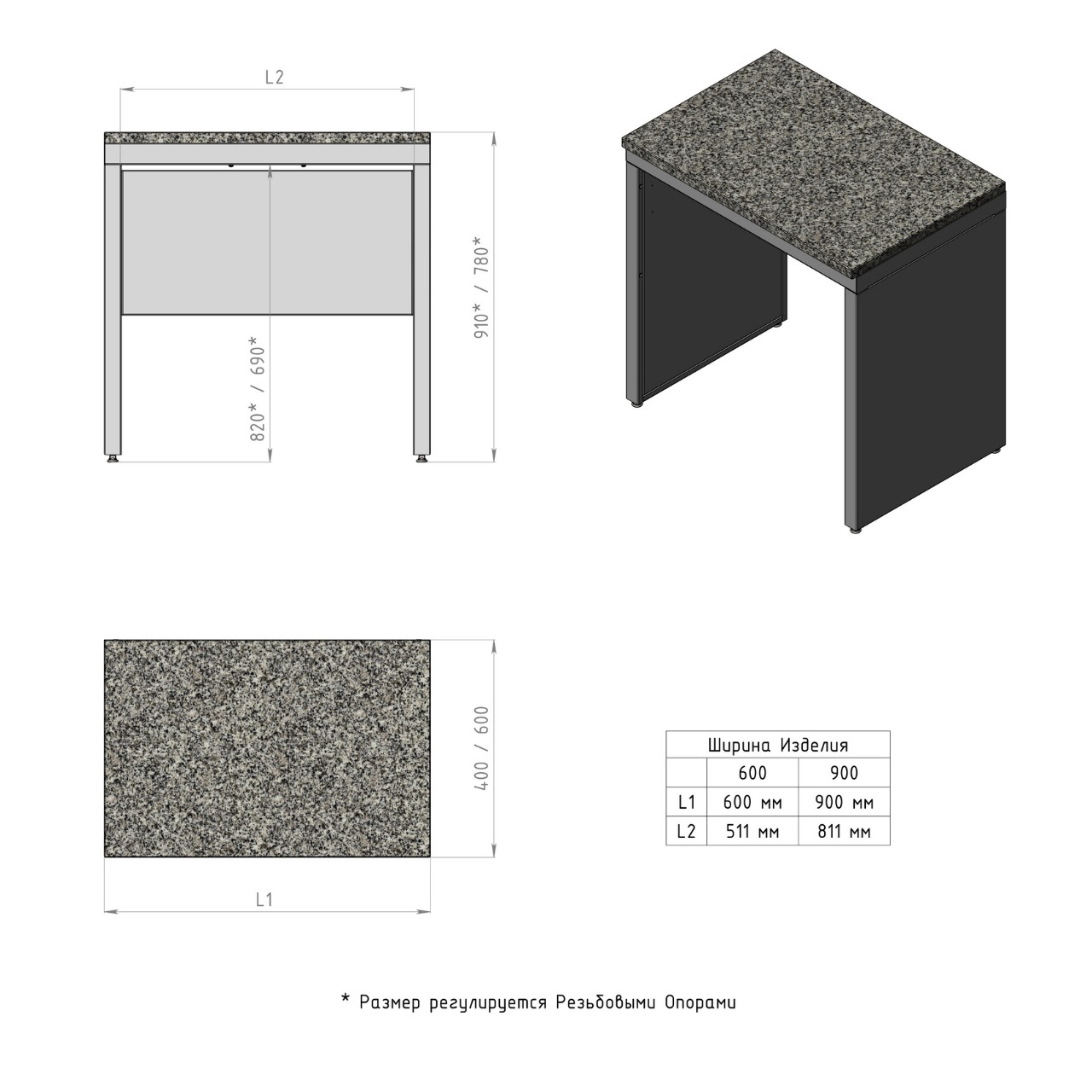 В каркасе стола предусмотрены регулируемые опоры в диапазоне 0-30 мм для компенсации неровностей пола.