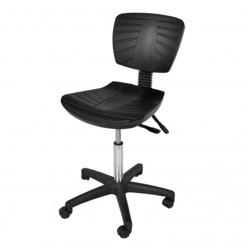 Материал сиденья и спинки лабораторного стула GEMA - мягкий литой полиуретан черного цвета, позволяющий работать в условиях больших знакопеременных нагрузок и температур.