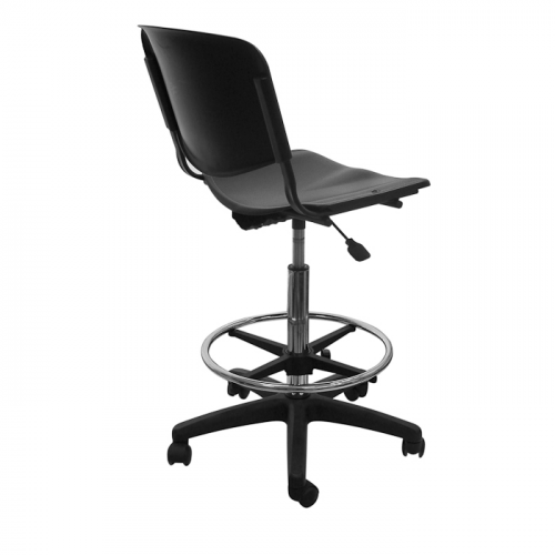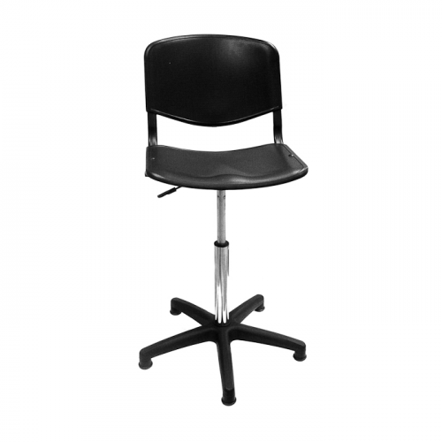 Материал сиденья и спинки лабораторного стула ТЕКО - пластик черного цвета.