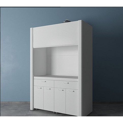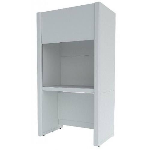 Вытяжная камера шкафа (верхняя часть) изготовлена из стали с полимерным покрытием. Рабочая камера имеет три зоны вытяжки - сверху, посередине и снизу рабочего объёма. Нижняя часть - прочный металлический каркас с полимерным покрытием серого цвета. В каркасе предусмотрены регулируемые опоры в диапазоне 0-30 мм для компенсации неровностей поверхности.