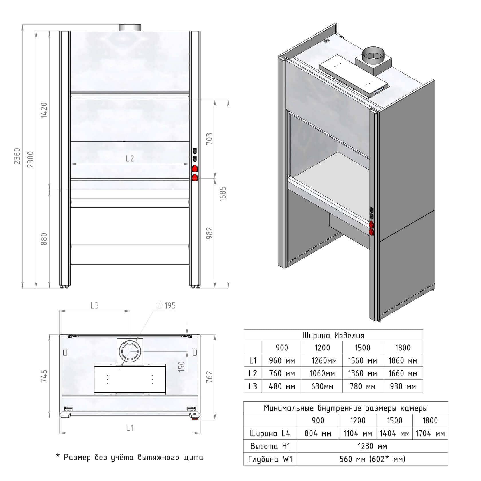 Шкаф вытяжной химический МОДЕЛИ: ЛК-900 ШВП, ЛК-1200 ШВП, ЛК-1500 ШВП, ЛК-1800 ШВП