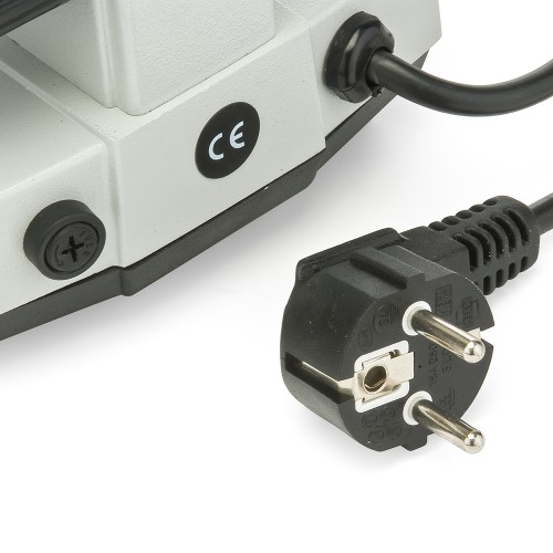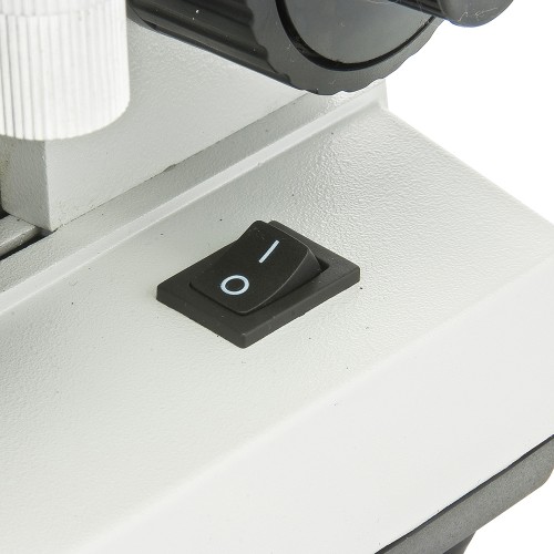 Осветитель с галогеновой лампой 6 В, 20 Вт, цоколь О4 и встроенным в основание микроскопа блоком питания.