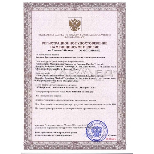 Кровать предназначена для использования как в лечебных учреждениях для ухода, диагностики и лечения пациентов под наблюдением врача, так и в домашних условиях - для профилактики, лечения и восстановления больных.