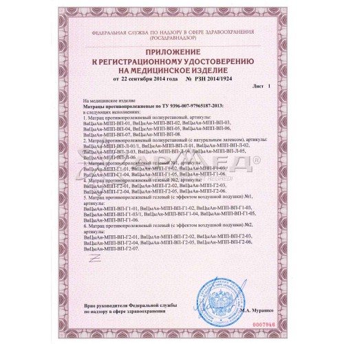 Матрац противополежневый полиуретановый МПП-ВП-04, 20002004, Медицинская мебель
