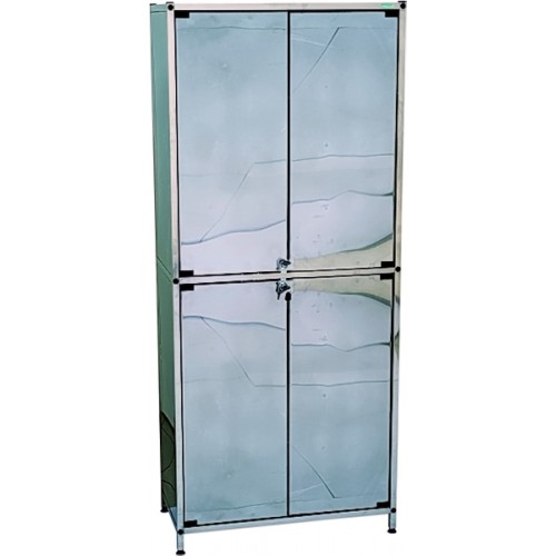 Имеет два отделения, каждое из которых оборудовано двумя полками и двумя дверцами из нержавеющей стали, укомплектовано замком. Установлен на винтовые, регулируемые опоры.