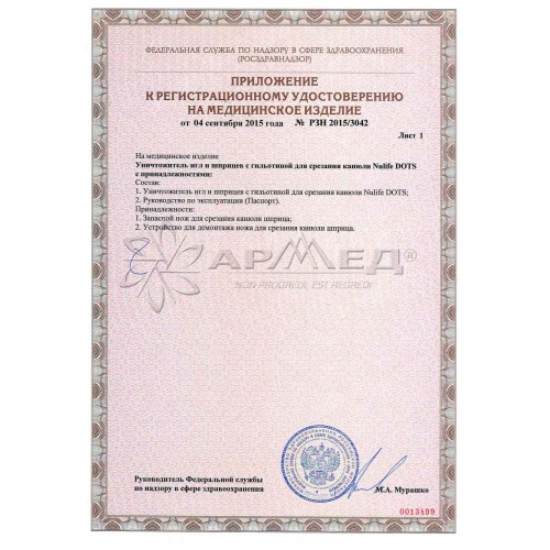 Встроенный нож на уничтожителе способен утилизировать до 2 шприцев или игл в минуту