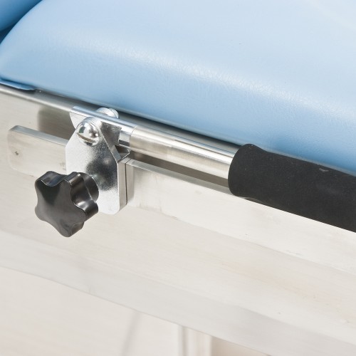 Тазобедренная секция кресла-кровати снабжена двумя регулируемыми держателями для рук и двумя упорами для ног.