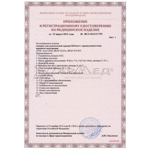 Маска совместима с апаратами CPAP, Auto CPAP, BPAP 25.