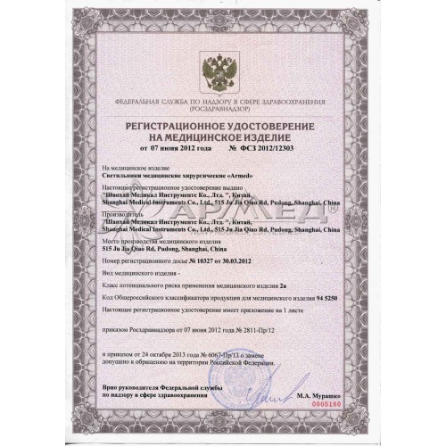 Светильник медицинский хирургический, 100203012, Медицинское оборудование и сопутствующие товары