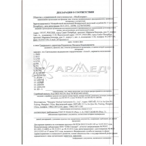 Светильник медицинский хирургический, 100203007, Медицинское оборудование и сопутствующие товары