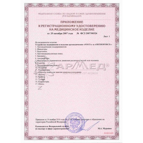 Корсет снабжен двумя дополнительными лентами-стяжками, обеспечивающими дополнительную фиксацию и позволяющими индивидуализировать данный ортез с учетом анатомических особенностей конкретного пациента.