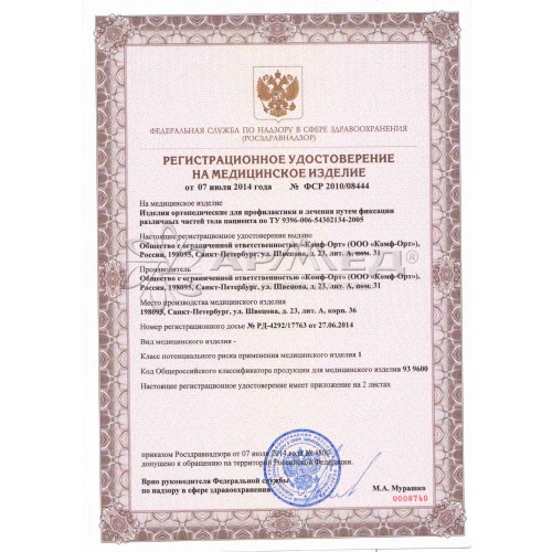 Показания к применению ортеза, режим и сроки ношения определяет лечащий врач.