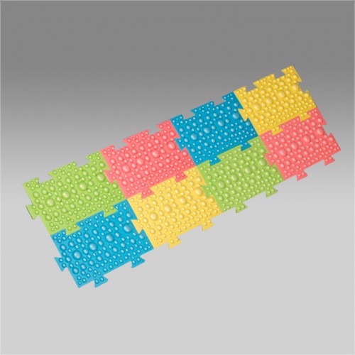 Массажные бугорки, которые расположены на поверхности модулей, имеют различную высоту и диаметр, что позволяет производить стимуляцию рецепторов подошвенной поверхности стопы ребенка, а также оказывает массажное действие и помогает укреплению мышц стопы и голени.