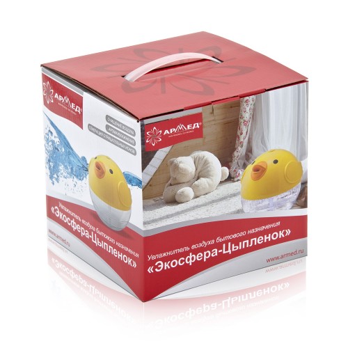 Освежитель-увлажнитель "Экосфера-Цыпленок" поможет очистить, увлажнить и ароматизировать воздух в вашей квартире или офисе так долго, как это необходимо. Просто добавьте, в зависимости от цели, несколько капель дезодорирующей жидкости или аромамасел в резервуар освежителя-увлажнителя "Экосферу" и наслаждайтесь чистотой и свежестью воздуха.