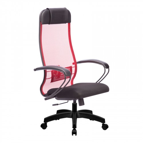 - красная спинка с черными накладками подлокотника и черным сиденьем.