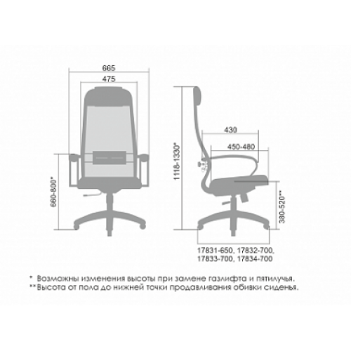 ** Высота сиденья в верхнем и нижнем положении может быть изменена, в зависимости от модели применяемого газ-лифта.
