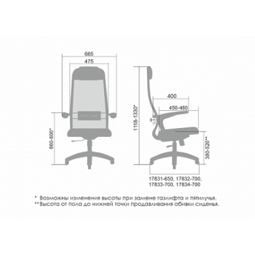 ** Высота сиденья в верхнем и нижнем положении может быть изменена, в зависимости от модели применяемого газ-лифта.