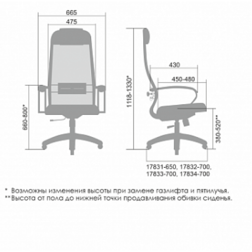 ** Высота сиденья в верхнем и нижнем положении может быть изменена, в зависимости от модели применяемого газ-лифта.