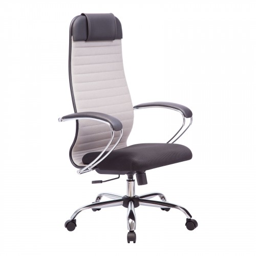 - светло-серый спинка с черными накладками подлокотника и черным сиденьем;