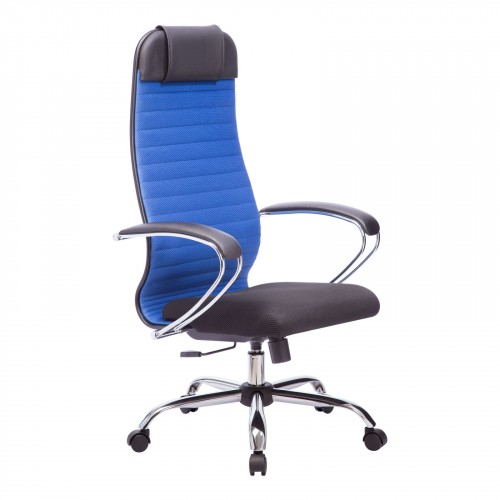 - синяя спинка с черными накладками подлокотника и черным сиденьем;