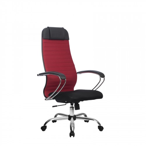 - красная спинка с черными накладками подлокотника и черным сиденьем.