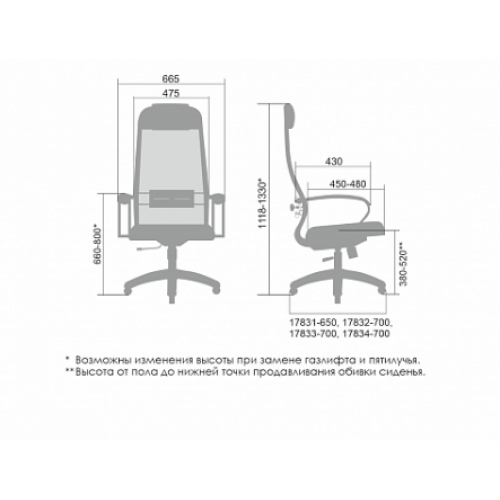 **Высота сиденья в верхнем и нижнем положении может быть изменена, в зависимости от модели применяемого газ-лифта.