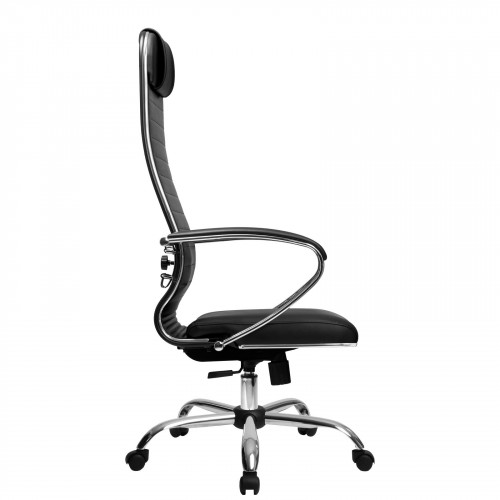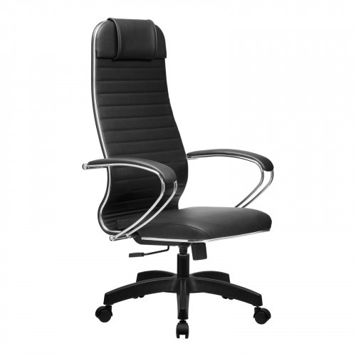 Спинка: высокая с мягким подголовником, черное полимерное покрытие каркаса;