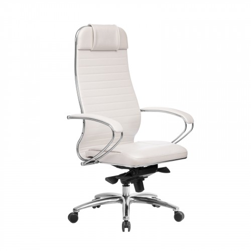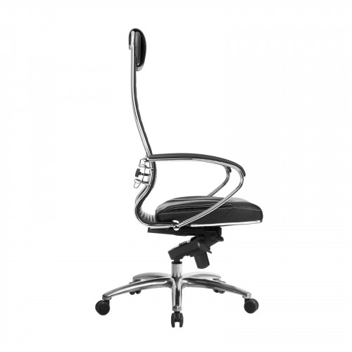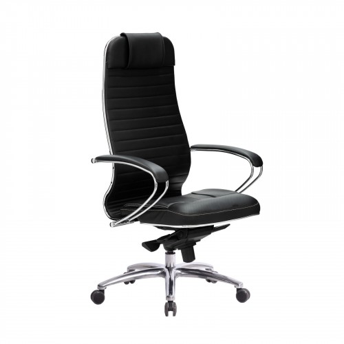 - высокая натяжная кожаная спинка кресла с мягким накладным подголовником;