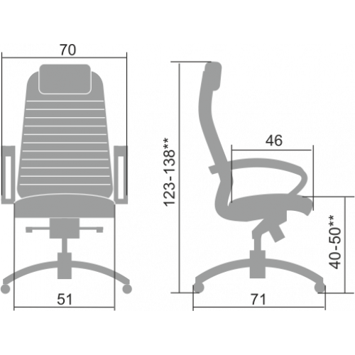 **Высота сиденья в верхнем и нижнем положении может быть изменена, в зависимости от модели применяемого газ-лифта.