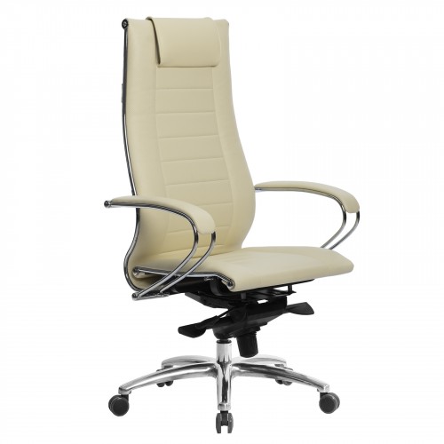 Подлокотники: стальные, покрытые зеркальным хромом, с мягкими накладками из износостойкого материала NewLeather*.