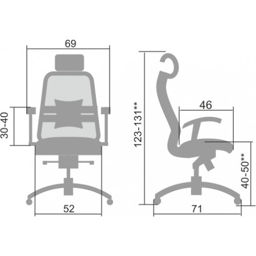 **Высота сиденья в верхнем и нижнем положении может быть изменена, в зависимости от модели применяемого газ-лифта.