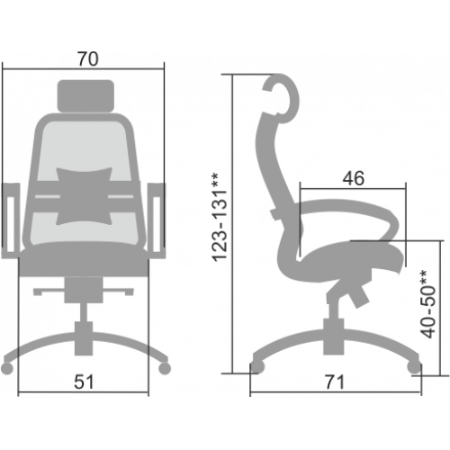 **Высота сиденья в верхнем и нижнем положении может быть изменена, в зависимости от модели применяемого газ-лифта.