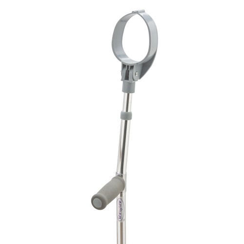 Костыль с опорой под локоть изготовлен из легкого, прочного и устойчивого к коррозии алюминиевого сплава.