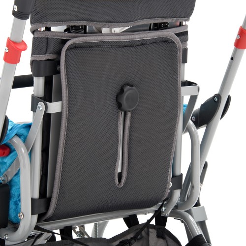 Кресло-коляска оснащена пятиточечным ремнем безопасности, который регулируется по длине и имеет надежную застежку.