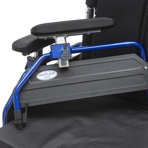 Кресло-коляска оснащена съемными, откидными регулируемыми по высоте подлокотниками.