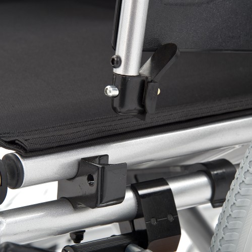 Рама кресла-коляски - складная, изготовлена из металлического сплава с эмалевым лакокрасочным покрытием.