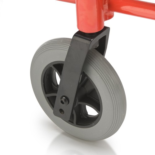 Кресло-коляска оснащена колесами, имеющими задние пневматические и передние цельнолитые шины.