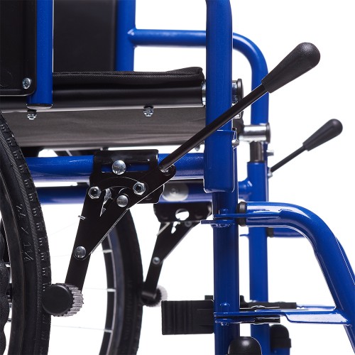 Кресло-коляска оснащена съемными,поворотными, регулируемыми по длине подножками с мягким упором для ног.