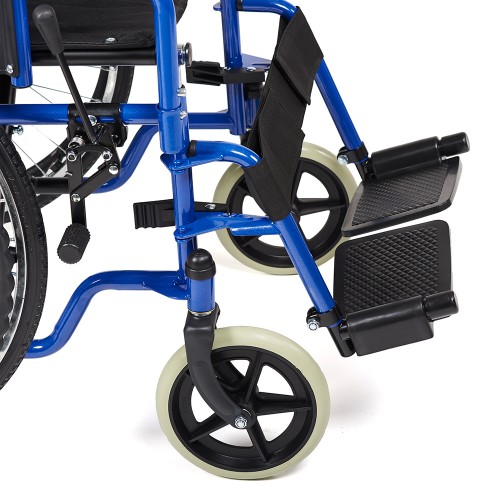 Кресло-коляска оснащена съемными и поворотными подножками.
