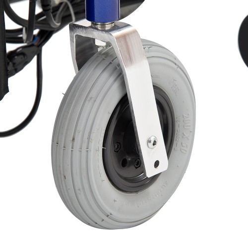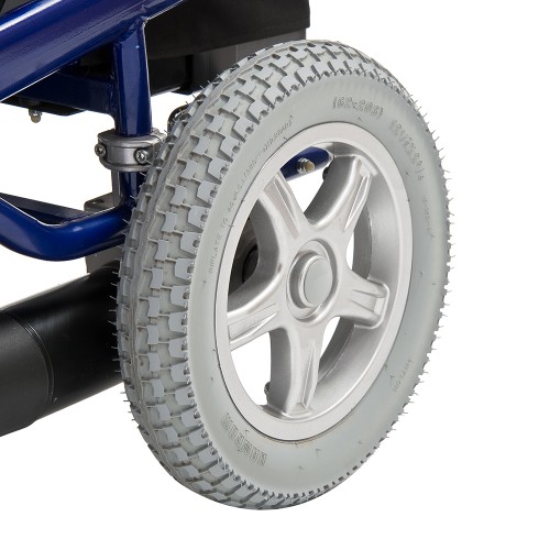 Кресло-коляска оснащена колесами, имеющими задние пневматические и передние цельнолитые шины.