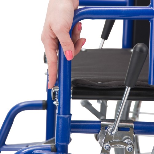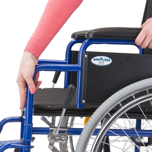 Рама кресла-коляски - складная, изготовлена из металла и имеет эмалевое лакокрасочное покрытие.