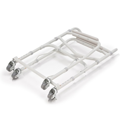 Высота кресла-коляски регулируется пятиуровневым кнопочным фиксатором через каждые 25 мм.
