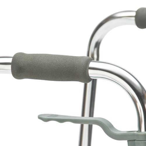 Ходунки изготовлены из металла, имеют мягкие накладки на поручни.