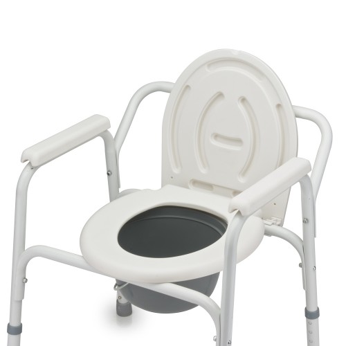 Рама кресла-туалета изготовлена из металла и имеет полимерное покрытие.